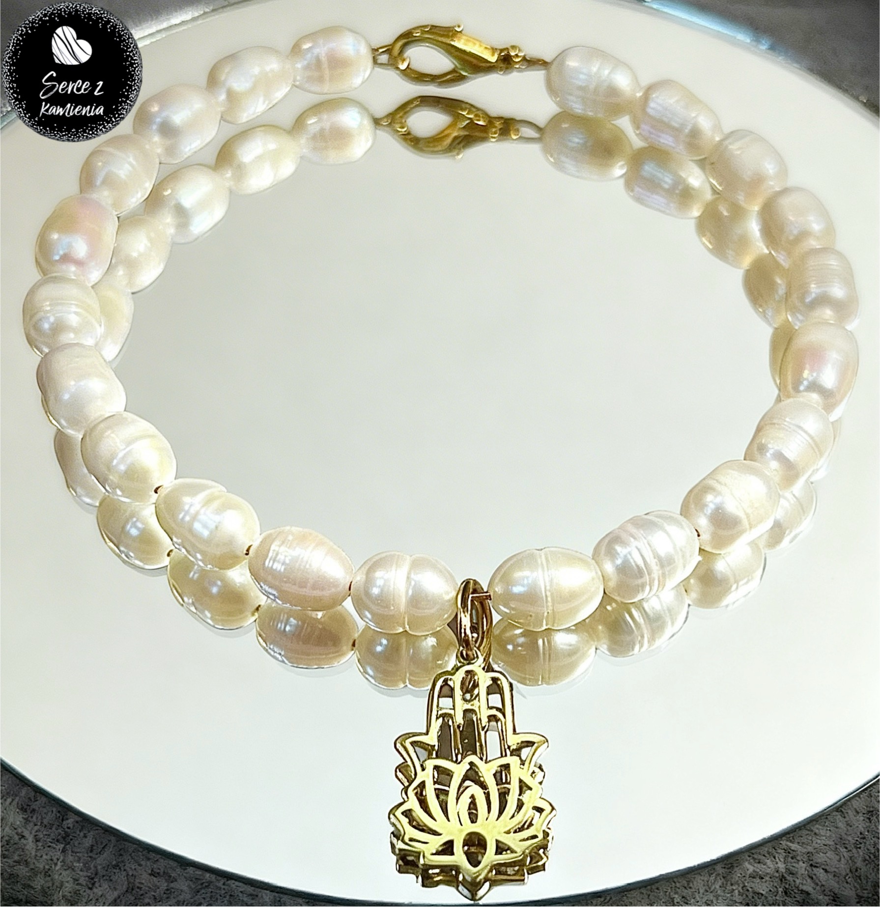 Masa perłowa – około 6-8mm + zawieszka serce obwód