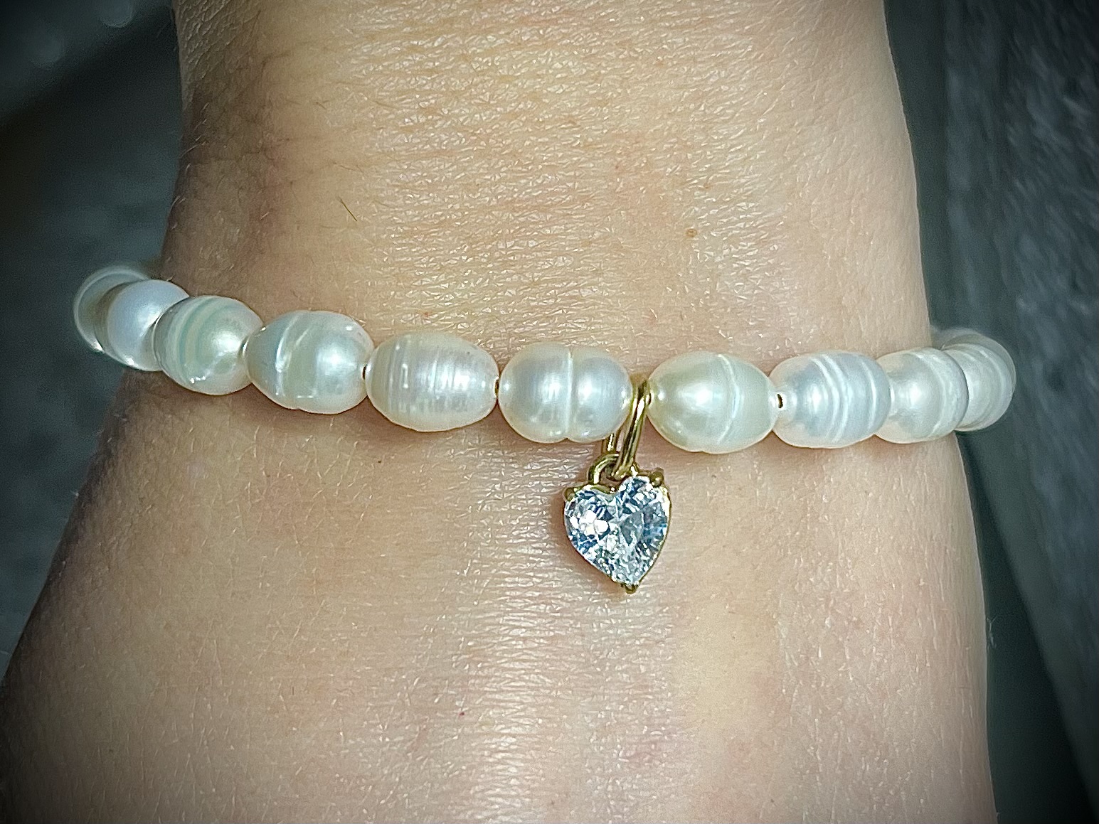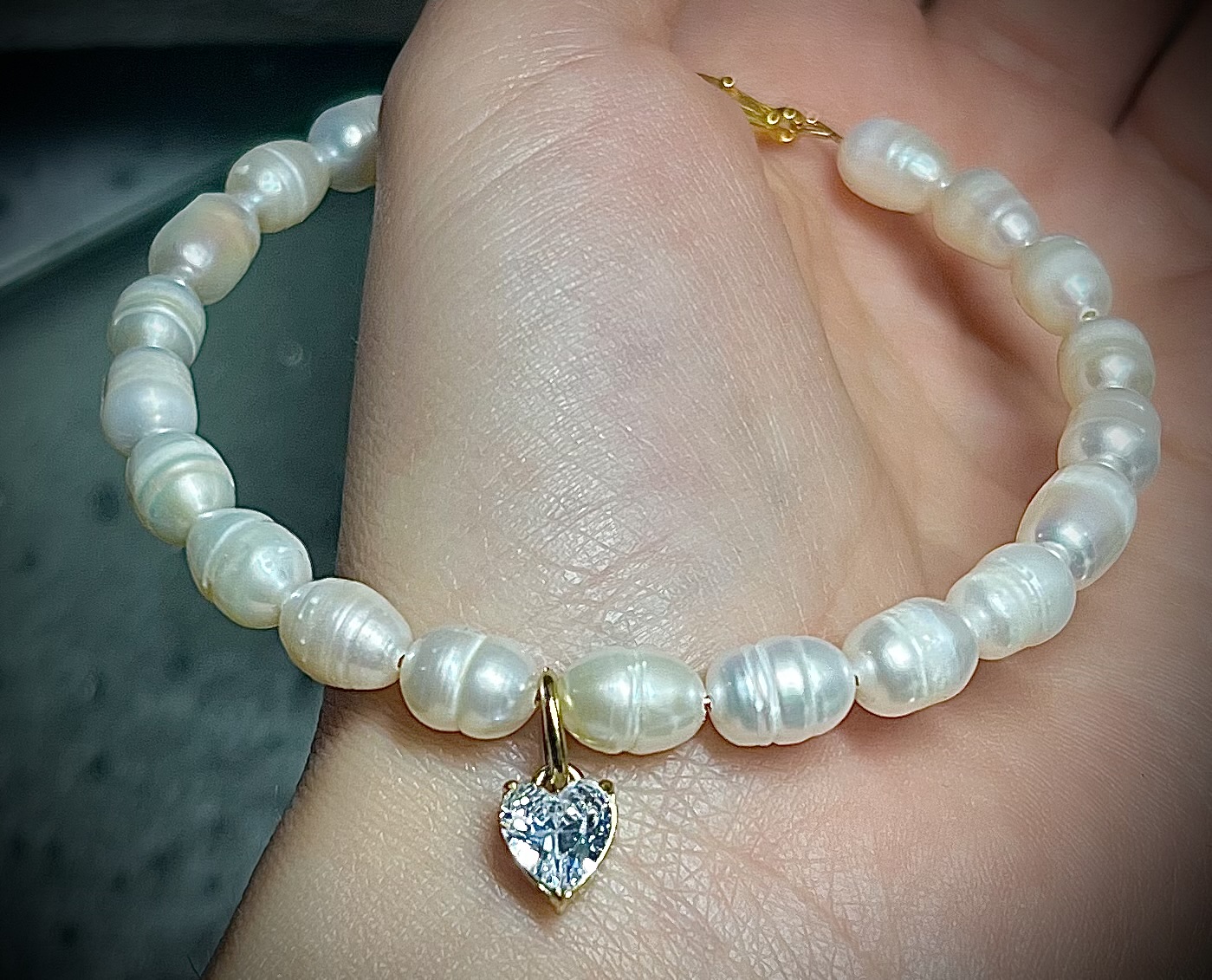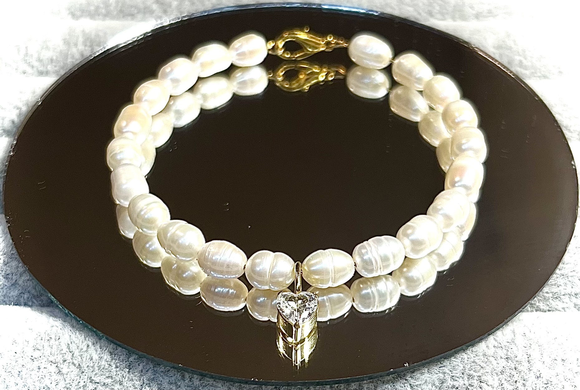 Masa perłowa – około 6-8mm + zawieszka serduszko cyrkonia
