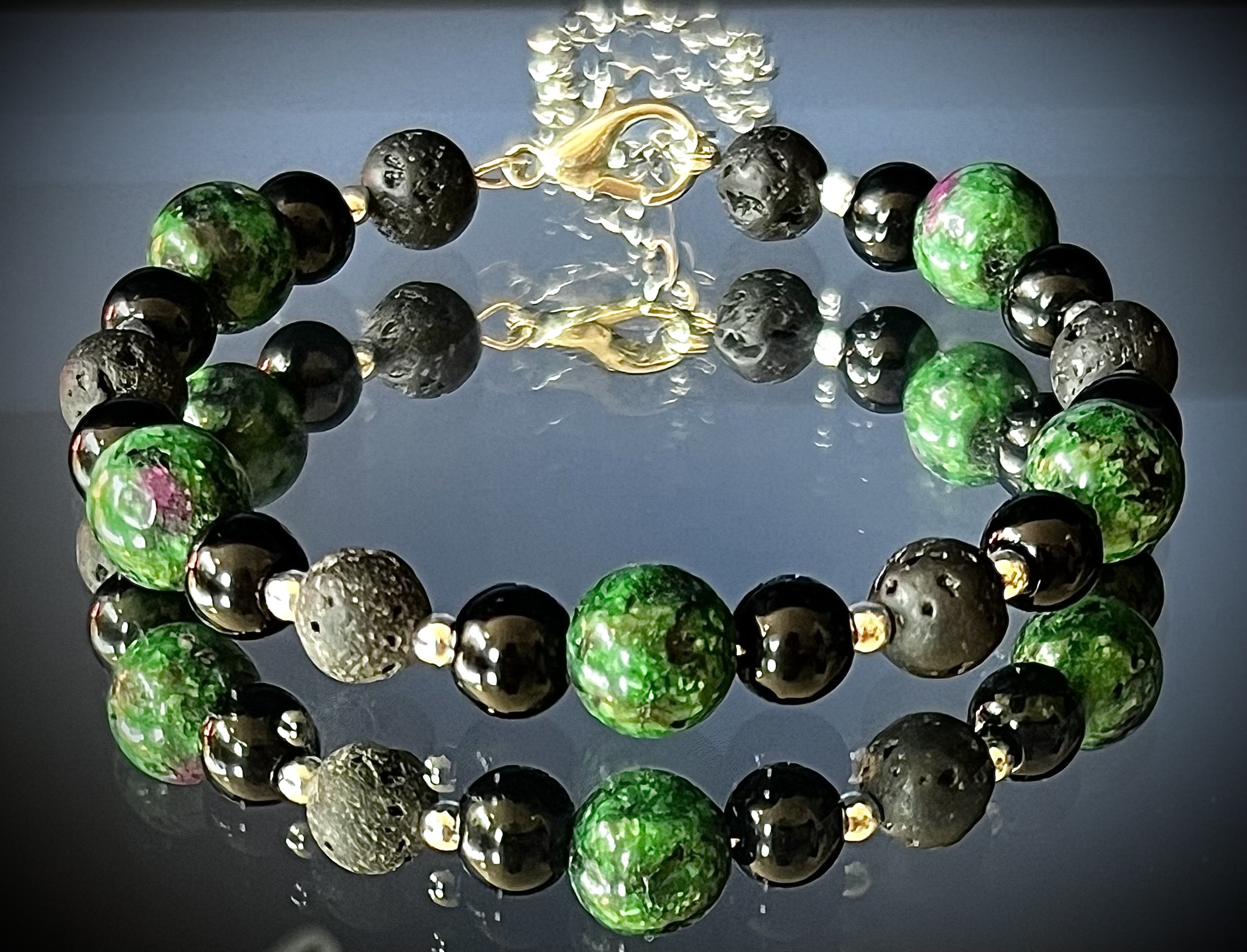 Ta niezwykła bransoletka łączy w sobie moc Czaroitu, Tygrysiego Oka oraz Amazonitu, tworząc silny talizman ochronny i przyciągający pozytywną energię. Jej energia otwiera na duchową przemianę, wspiera w budowaniu harmonii oraz wprowadza do życia szczęście, pomyślność i dobro. To biżuteria, która nie tylko chroni przed negatywnością, ale również magnetycznie przyciąga radość, optymizm i wewnętrzny spokój.