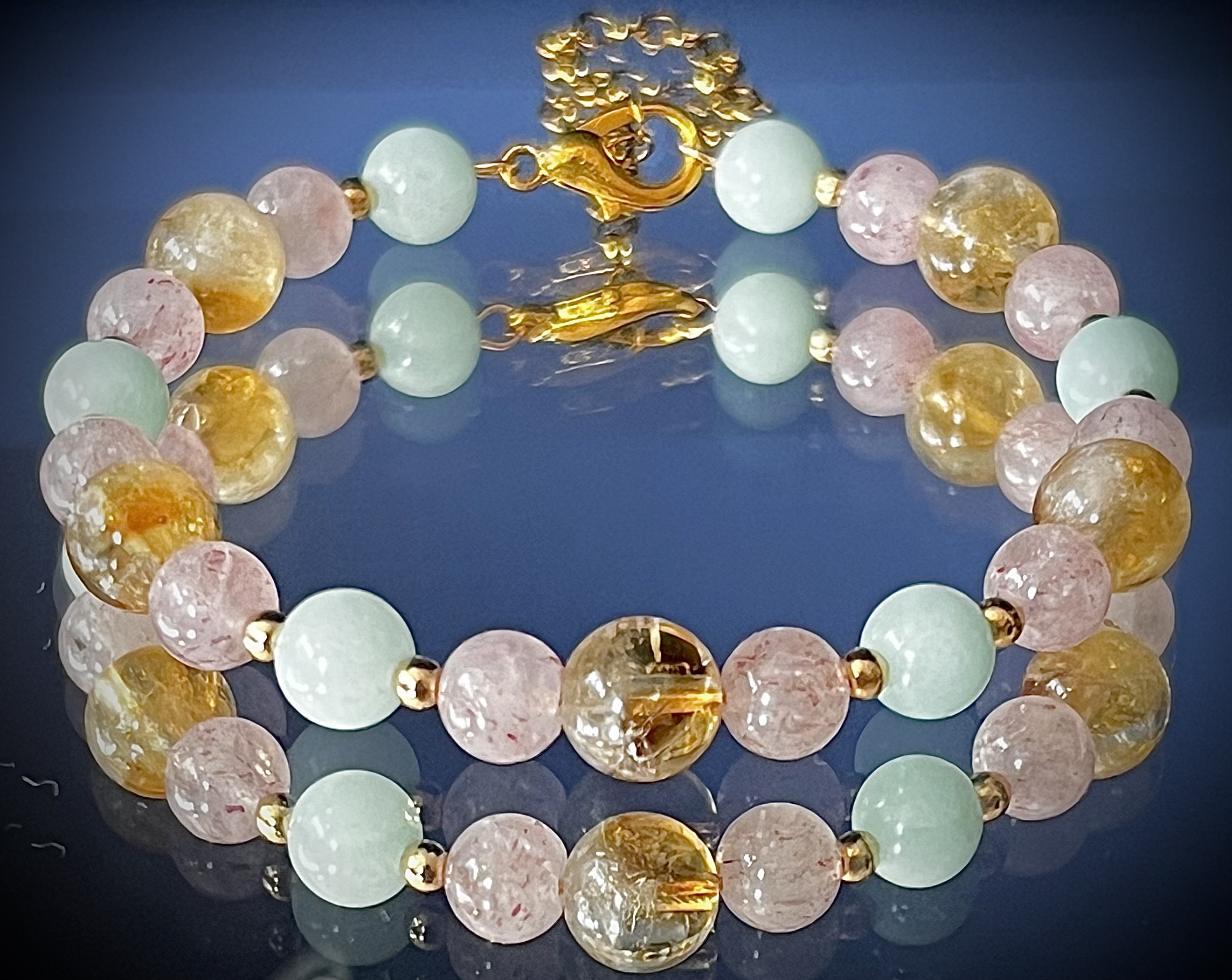 Ta wyjątkowa bransoletka została stworzona z połączenia mocy Amazonitu, Kwarcu Truskawkowego oraz Cytrynu, które wspólnie tworzą potężny talizman przyciągający do życia dobro, harmonię i sprzyjające okoliczności. To biżuteria, która nie tylko chroni i wzmacnia wewnętrznie, ale także magnetycznie otwiera na relacje pełne ciepła, inspiracji i pozytywnej energii.