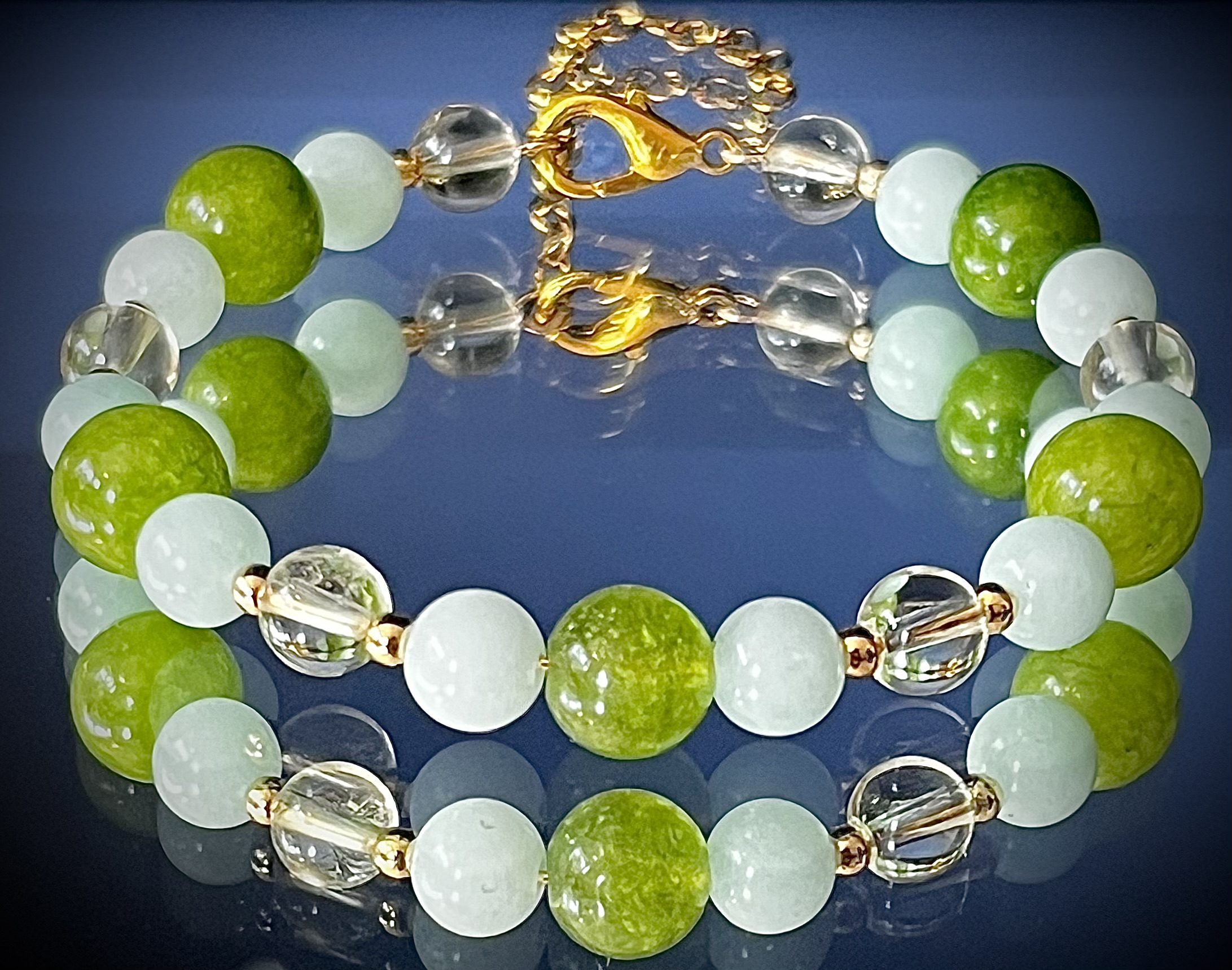 Zdjęcie bransoletki ma charakter jedynie podglądowy. Ponieważ są to kamienie naturalne, mogą w rzeczywistości nieznacznie różnić się kształtem oraz kolorem od widocznych na stronie sklepu. W tym tkwi cały urok kamieni naturalnych – nie ma dwóch identycznych, zatem każda bransoletka jest jedyna w swoim rodzaju i niepowtarzalna.
