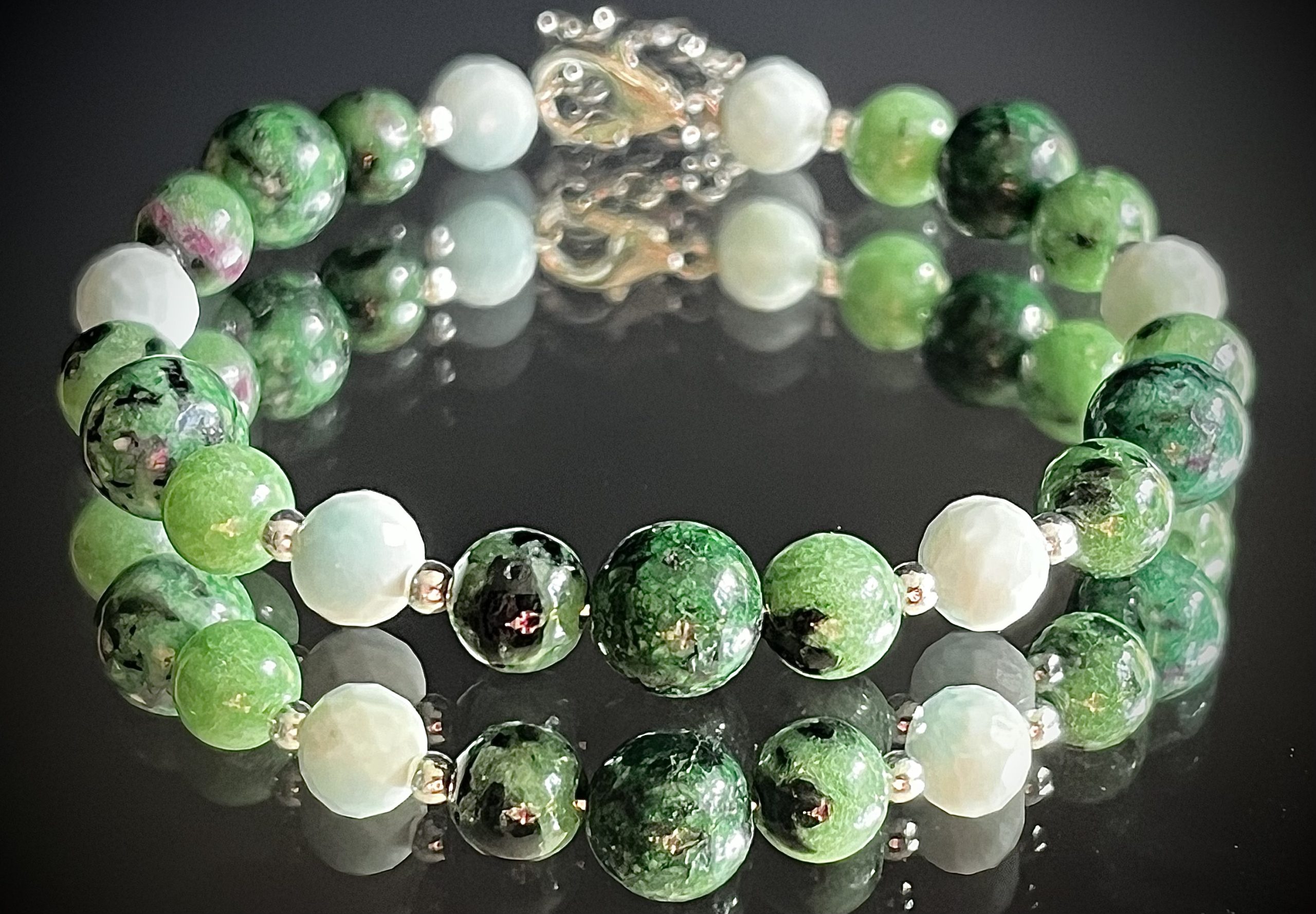 Połączenie Zoisytu i Hemimorfitu tworzy bransoletkę, która wzmacnia witalność, motywuje do działania, chroni energetycznie i wspiera rozwój osobisty. Ten talizman pozwala zyskać większą pewność siebie, harmonizuje emocje, uwalnia od stresu i negatywnych wpływów, a także inspiruje do świadomego kroczenia własną ścieżką życia.