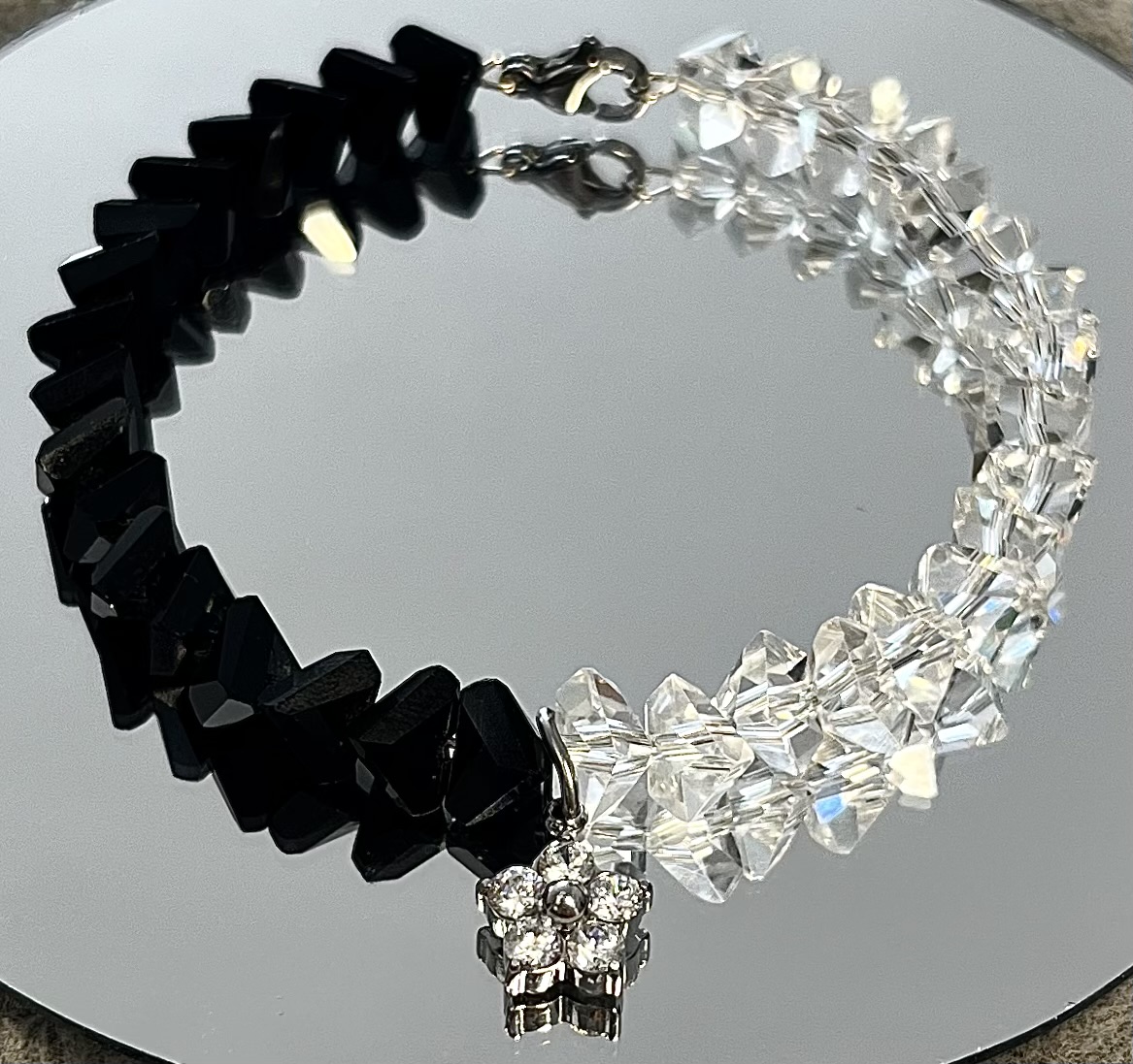 Bransoletka z czarnego i kryształowego szkła jubilerskiego z zawieszką