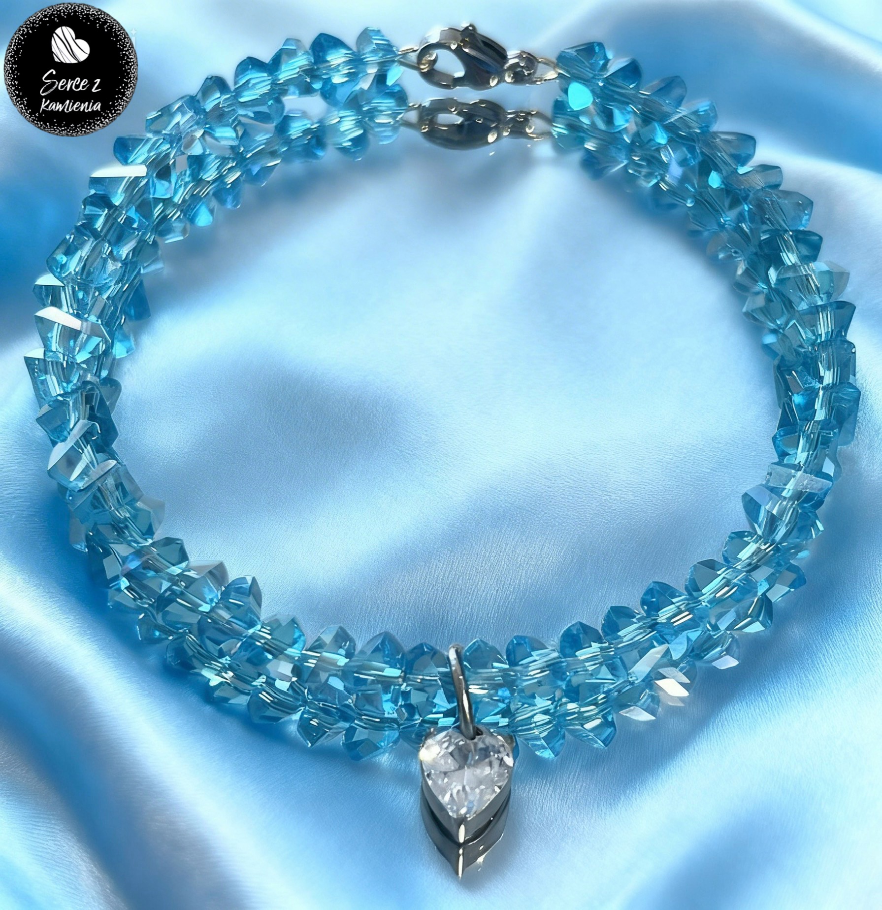 Bransoletka z błękitnego szkła jubilerskiego