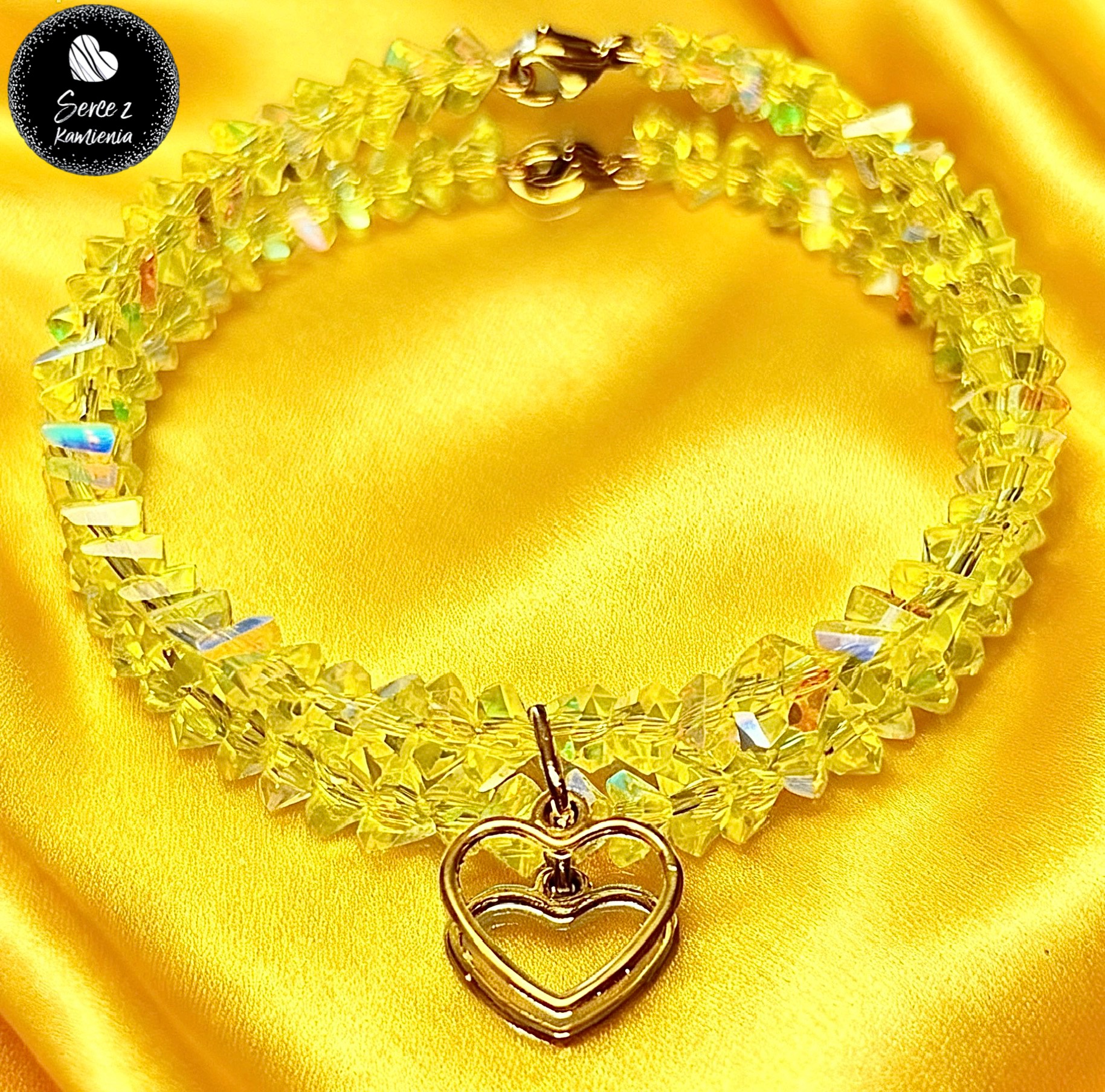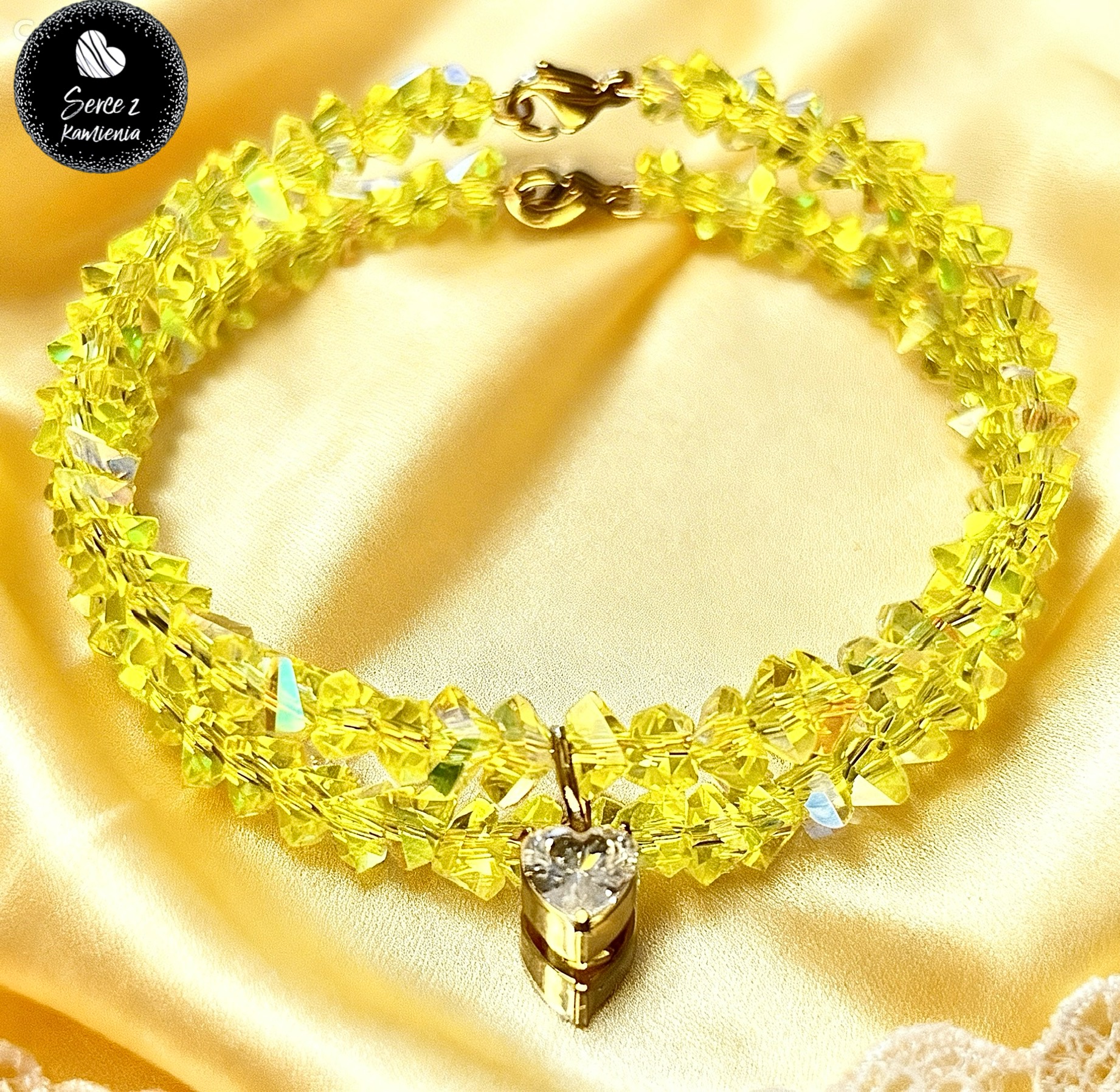 Bransoletka z cytrynowego szkła jubilerskiego z zawieszką – serce obwód