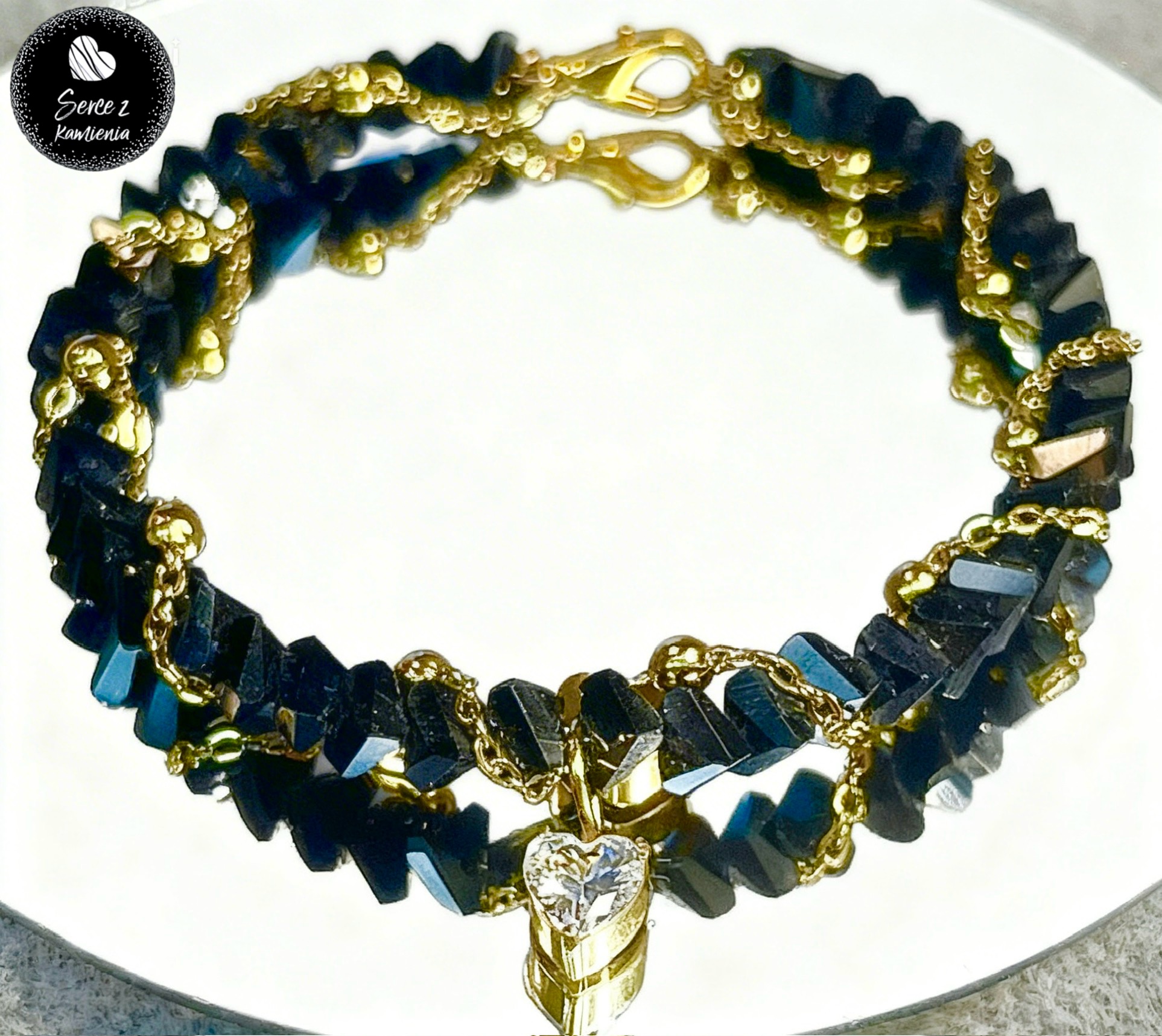Bransoletka – czarne szkło jubilerskie z łańcuszkiem i zawieszką