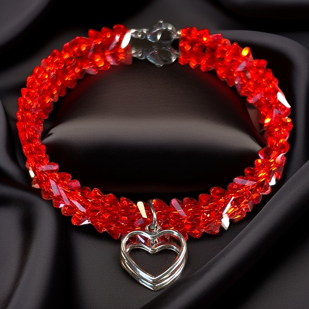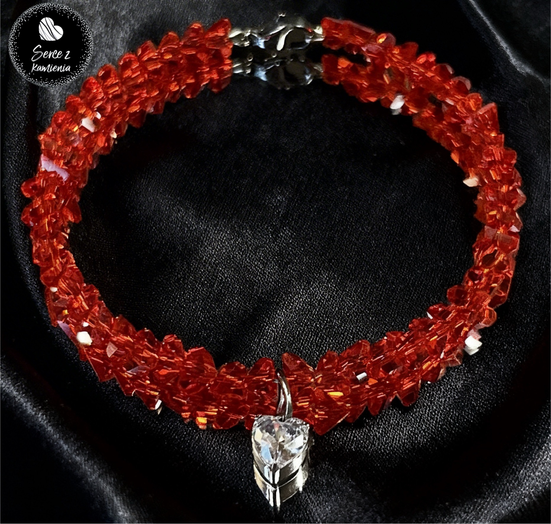 Bransoletka z czerwonego szkła jubilerskiego z zawieszką