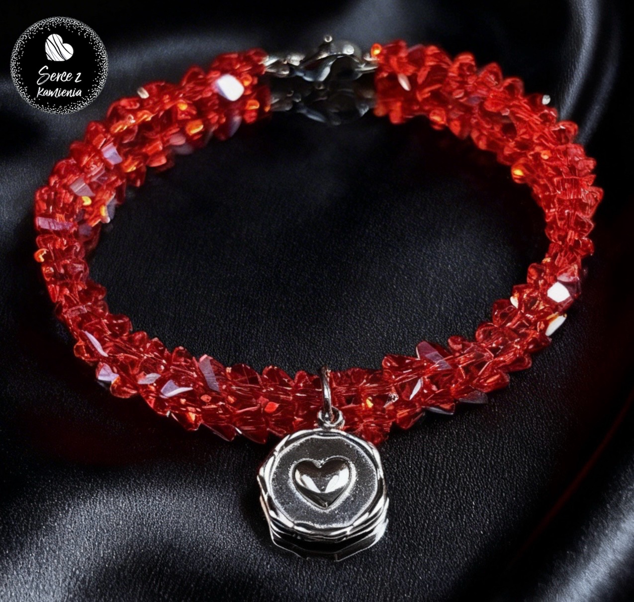 Bransoletka z czerwonego szkła jubilerskiego z zawieszką – serce