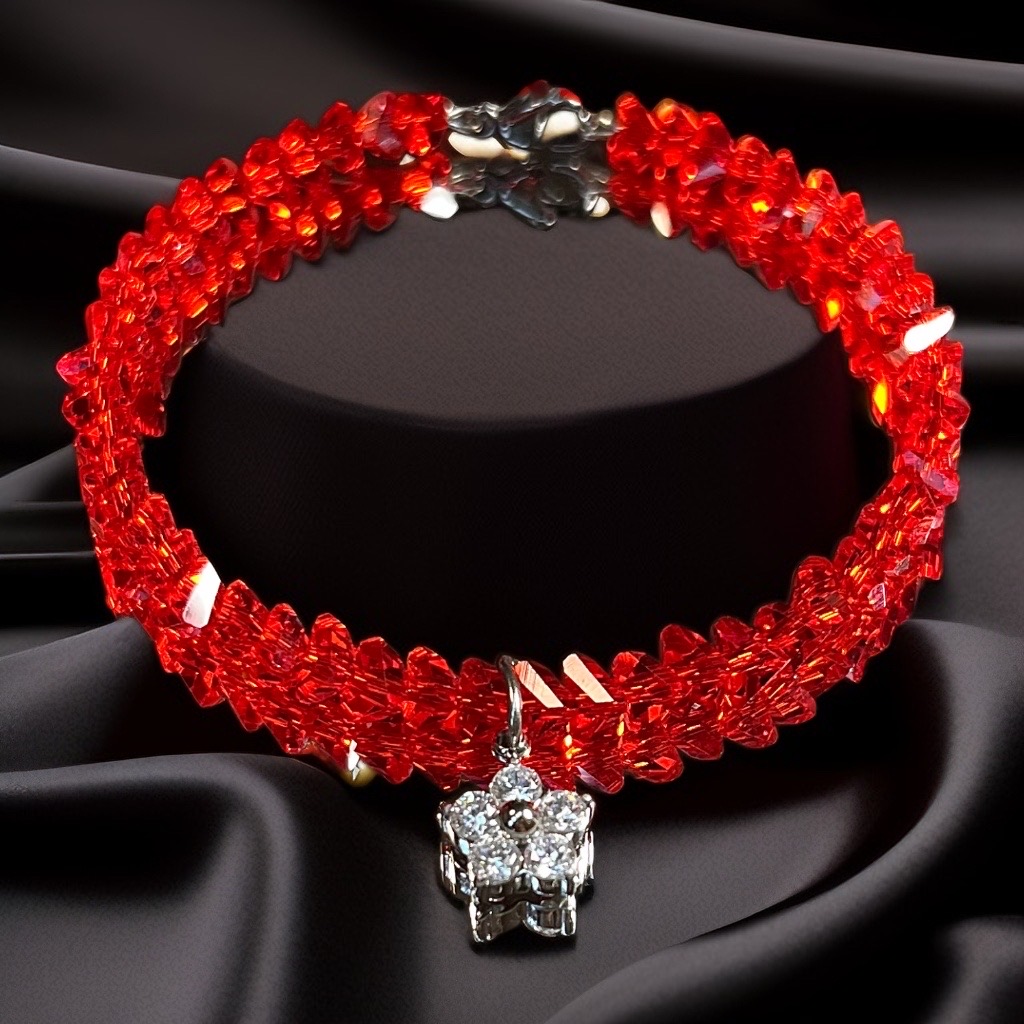 Bransoletka z czerwonego szkła jubilerskiego z zawieszką