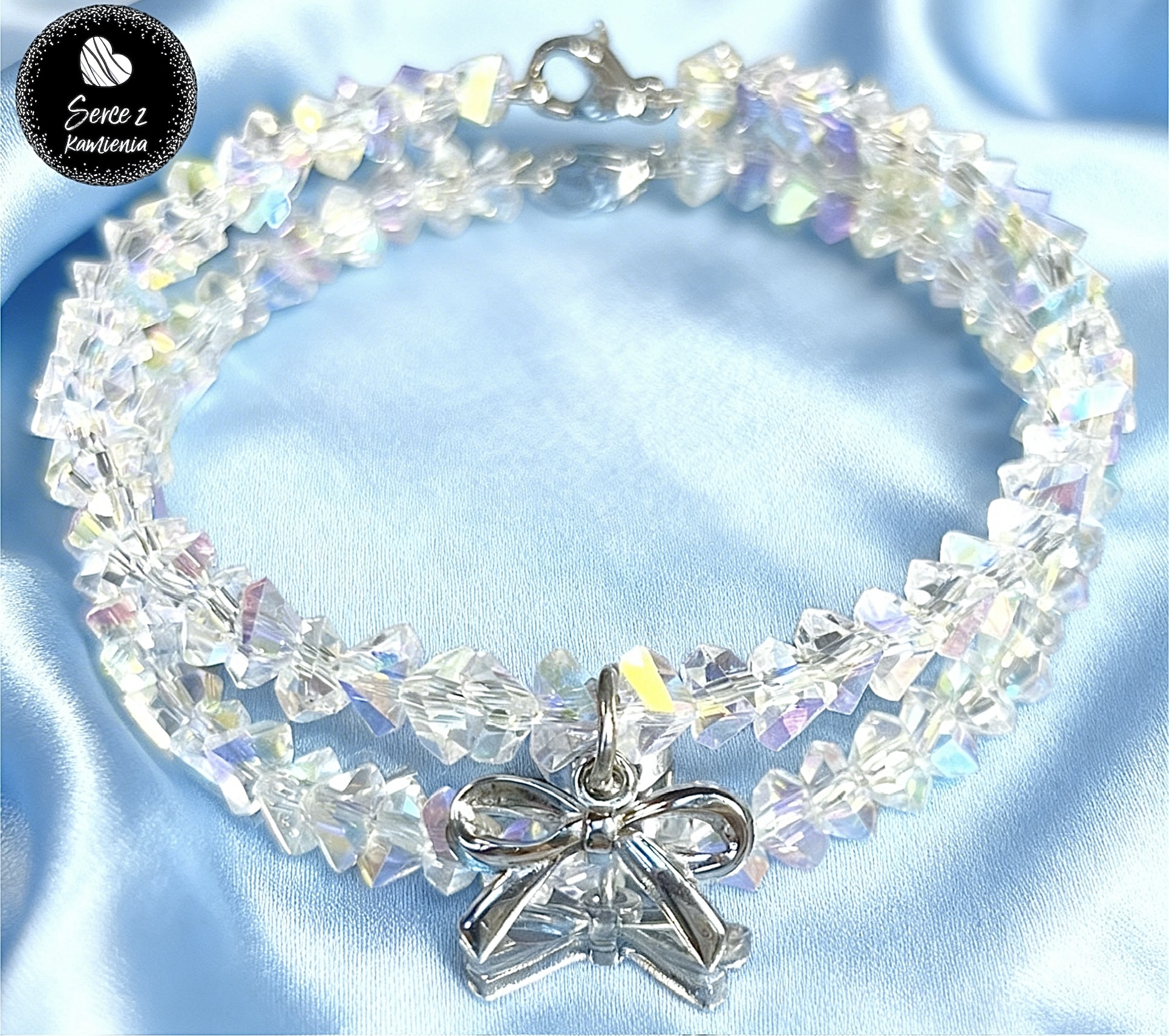 Bransoletka z kryształowego opalizującego szkła jubilerskiego z zawieszką