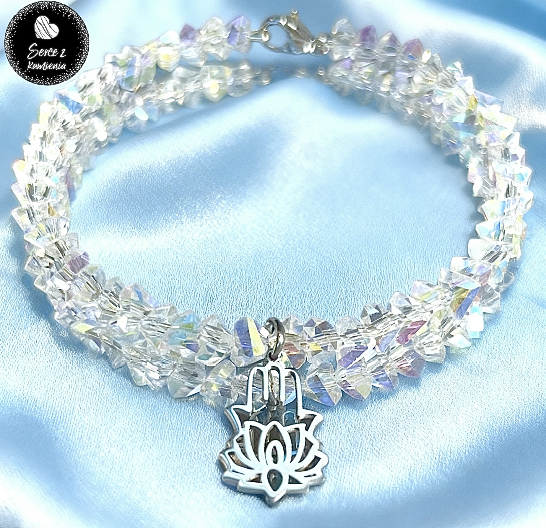 Bransoletka z kryształowego opalizującego szkła jubilerskiego z zawieszką