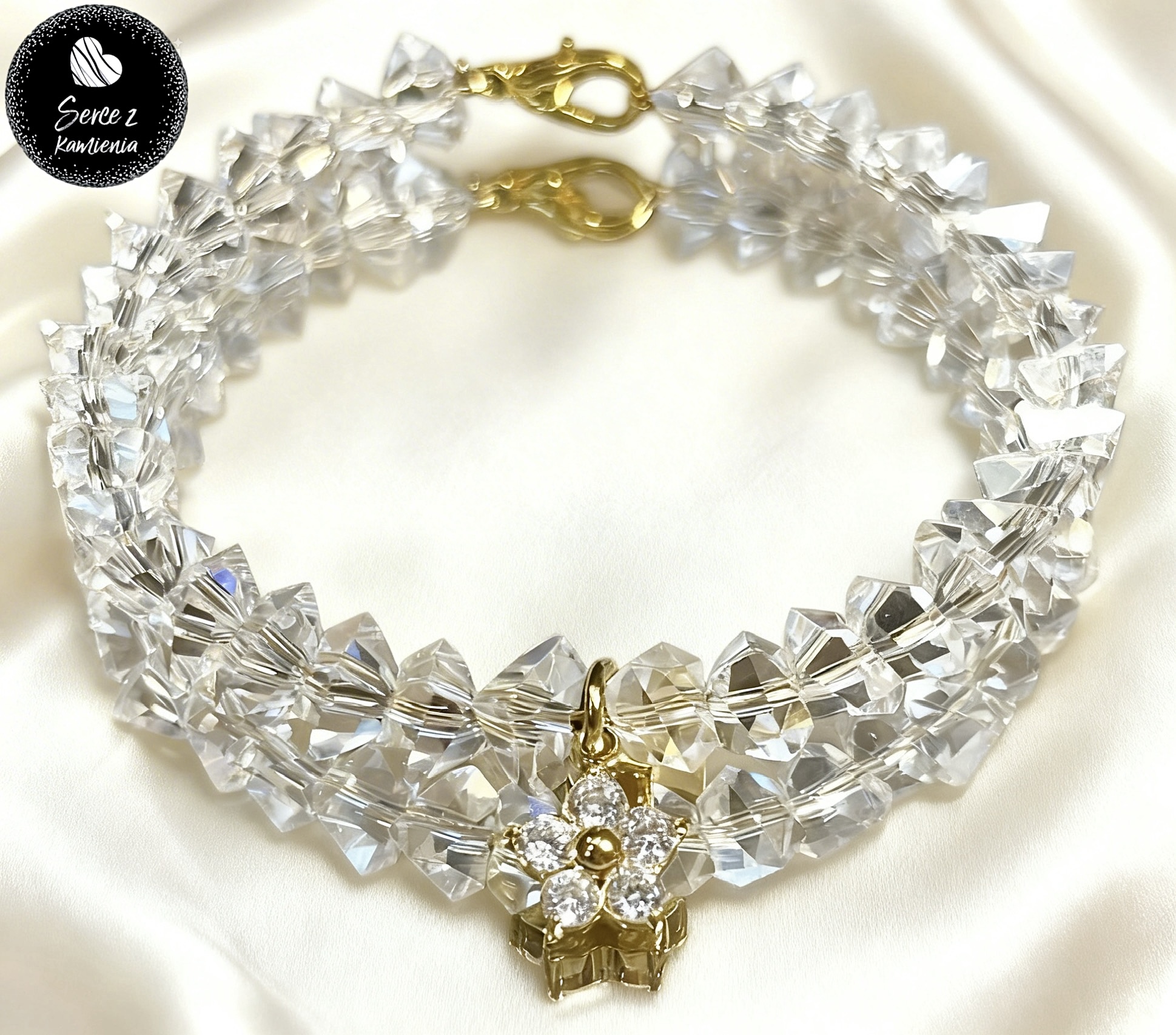 Bransoletka z kryształowego szkła jubilerskiego z zawieszką – kwiatek cyrkonia