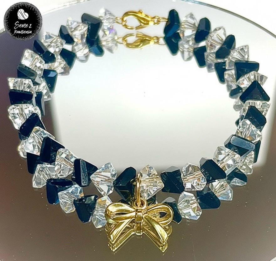 Szkło mix black & white – zawieszka kokardka