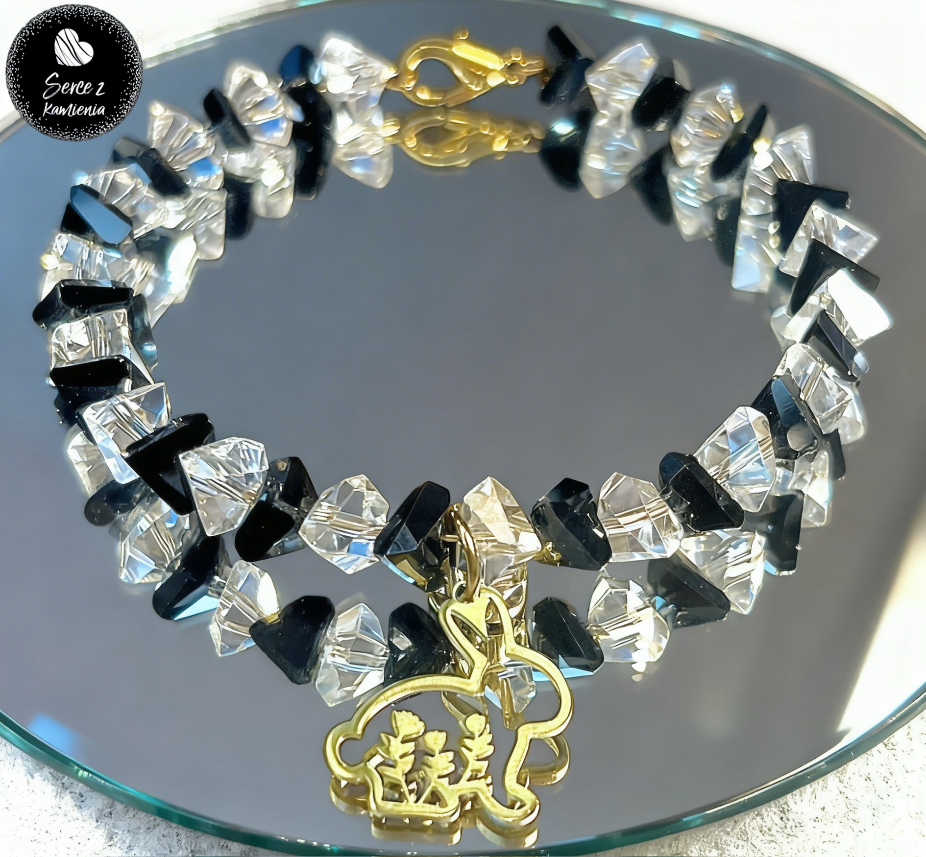Ta wyjątkowa bransoletka zachwyca harmonią światła i formy, łącząc w sobie szlachetność szkła jubilerskiego z nowoczesną elegancją stali nierdzewnej. Każdy jej element został dopracowany z niezwykłą starannością, dzięki czemu biżuteria ta urzeka zarówno subtelnością detali, jak i wyrafinowanym charakterem.