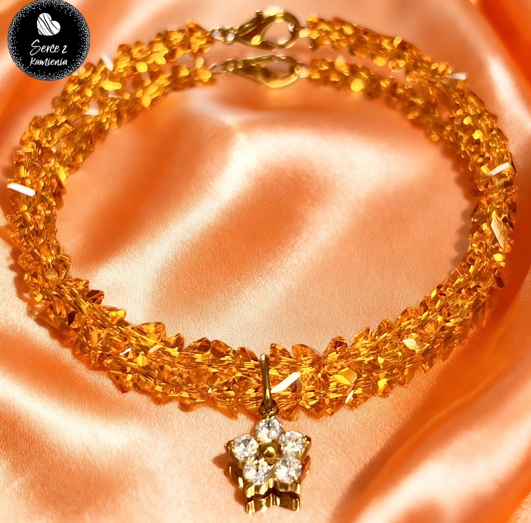 Bransoletka z pomarańczowego szkła jubilerskiego z zawieszką – gwiazdka cyrkonia