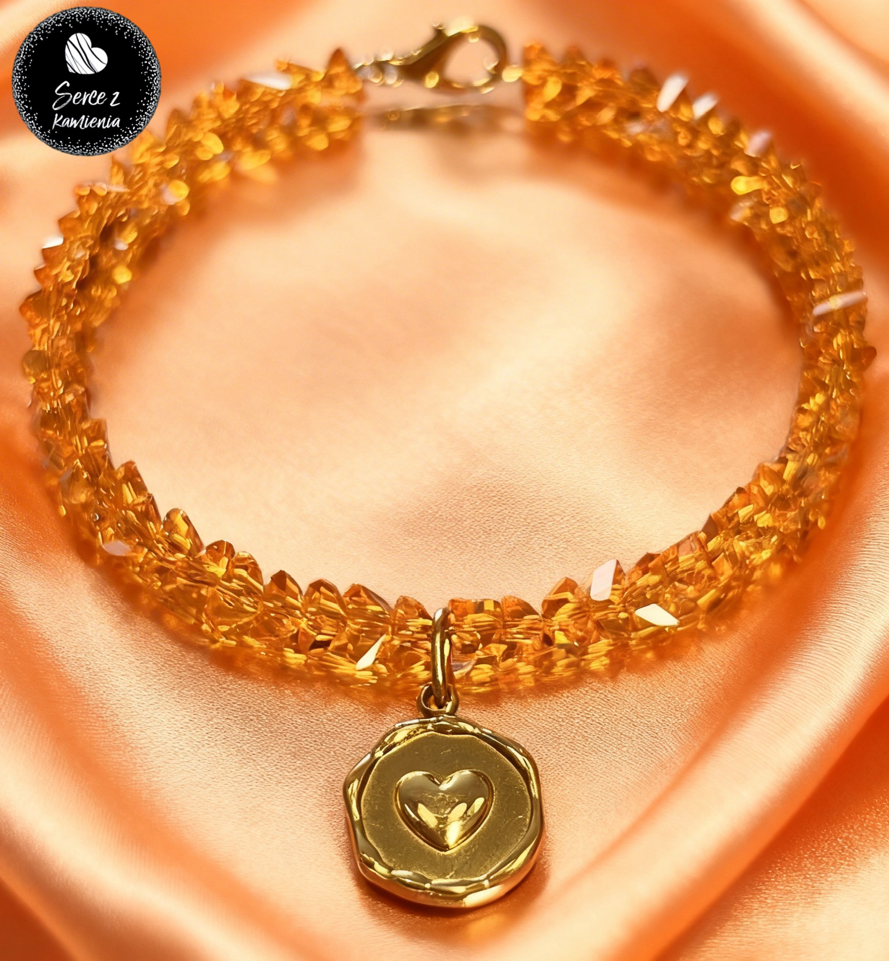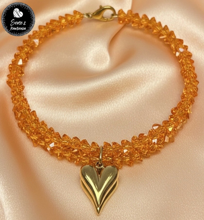 Bransoletka z pomarańczowego szkła jubilerskiego z zawieszką – serce