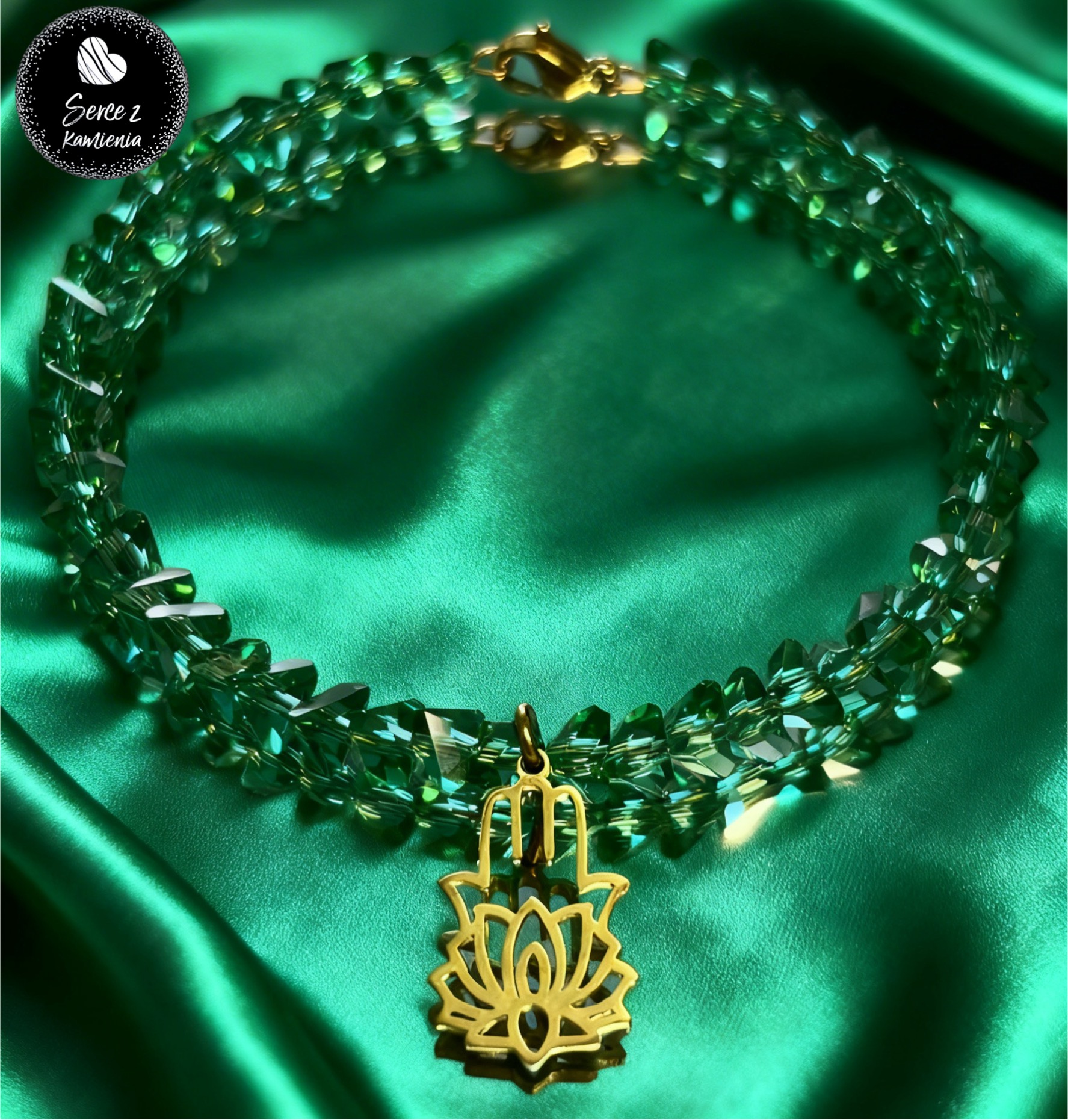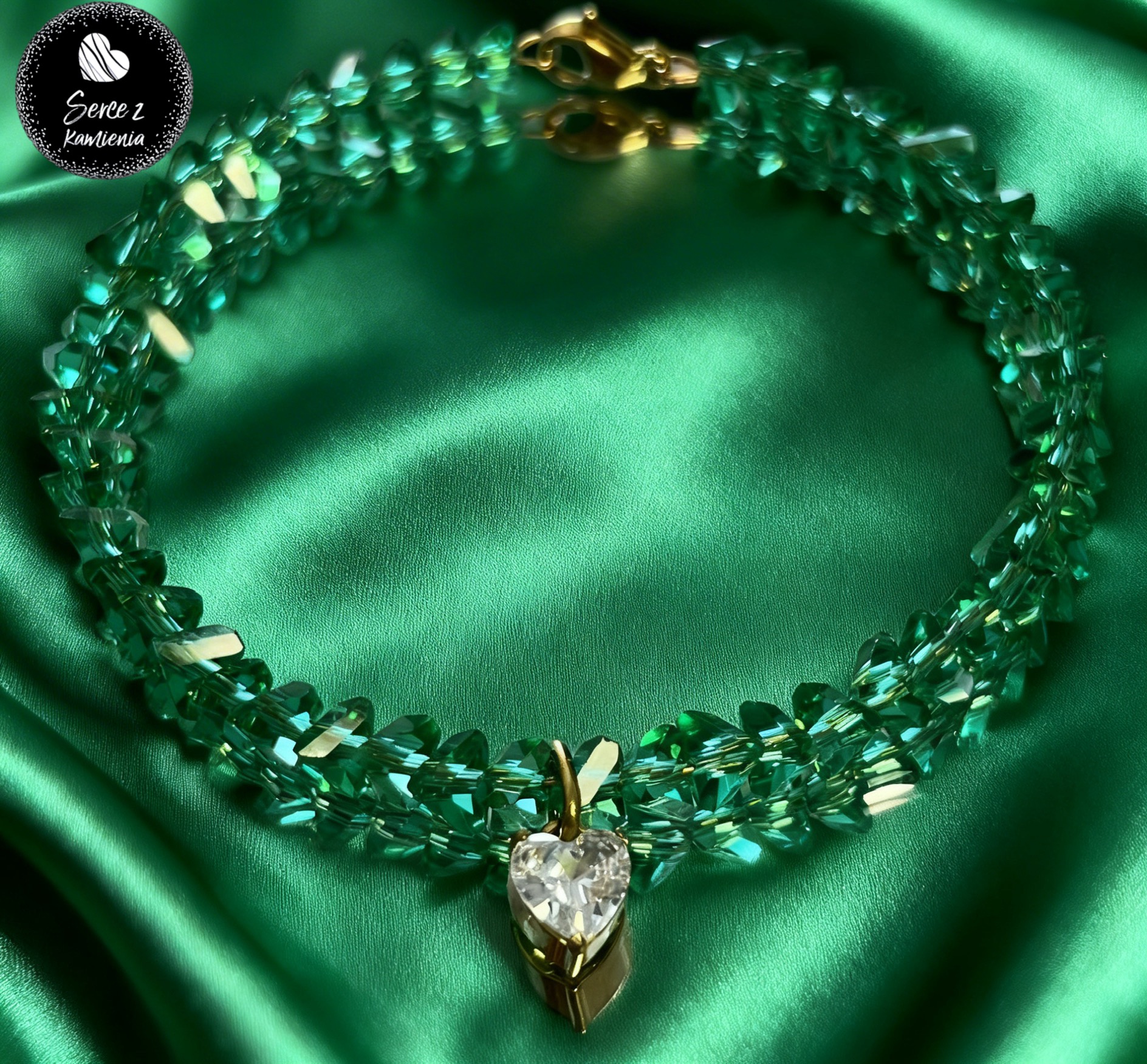 Bransoletka z zielonego szkła jubilerskiego z zawieszką