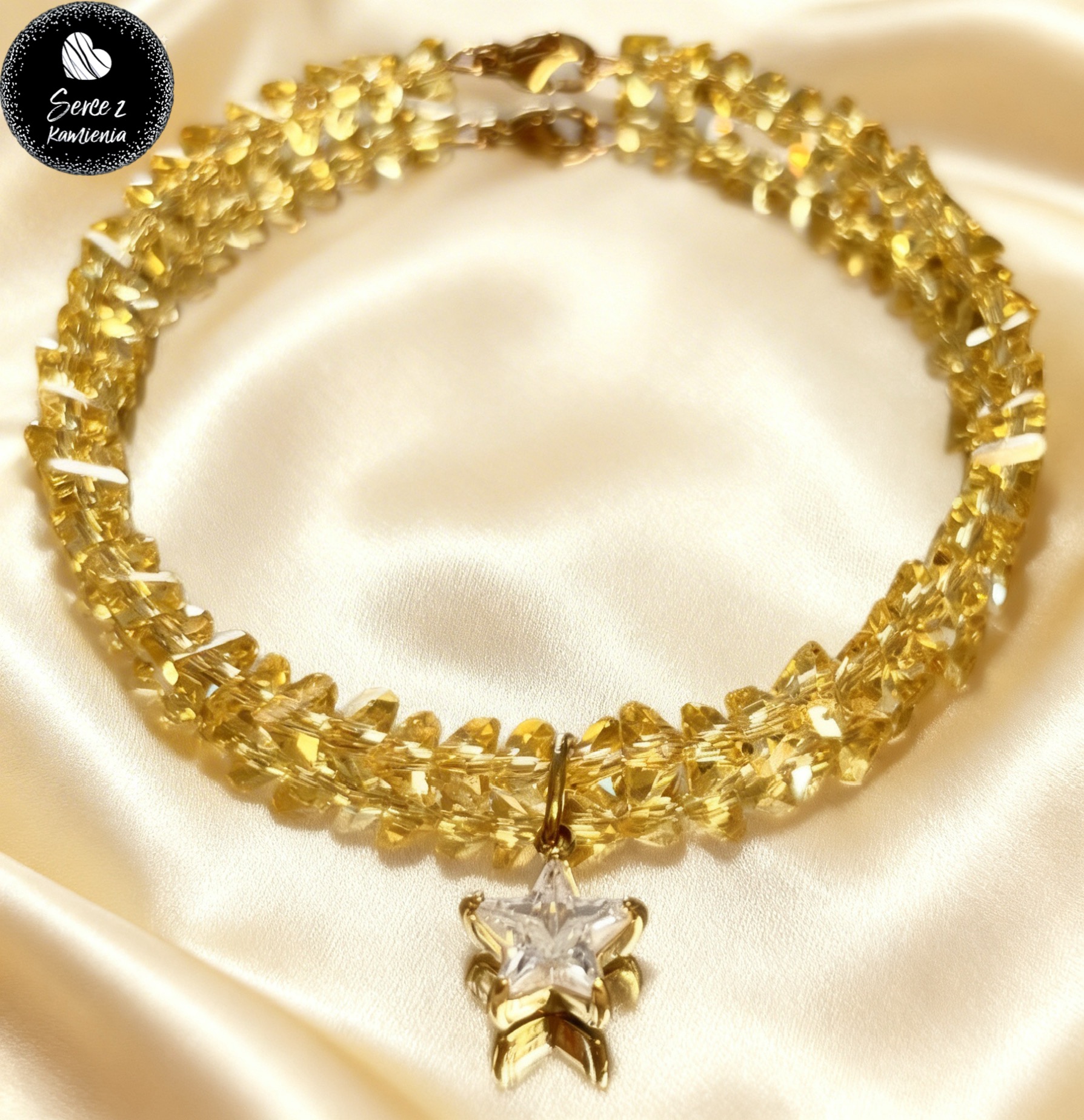 Bransoletka z żółtego szkła jubilerskiego z zawieszką