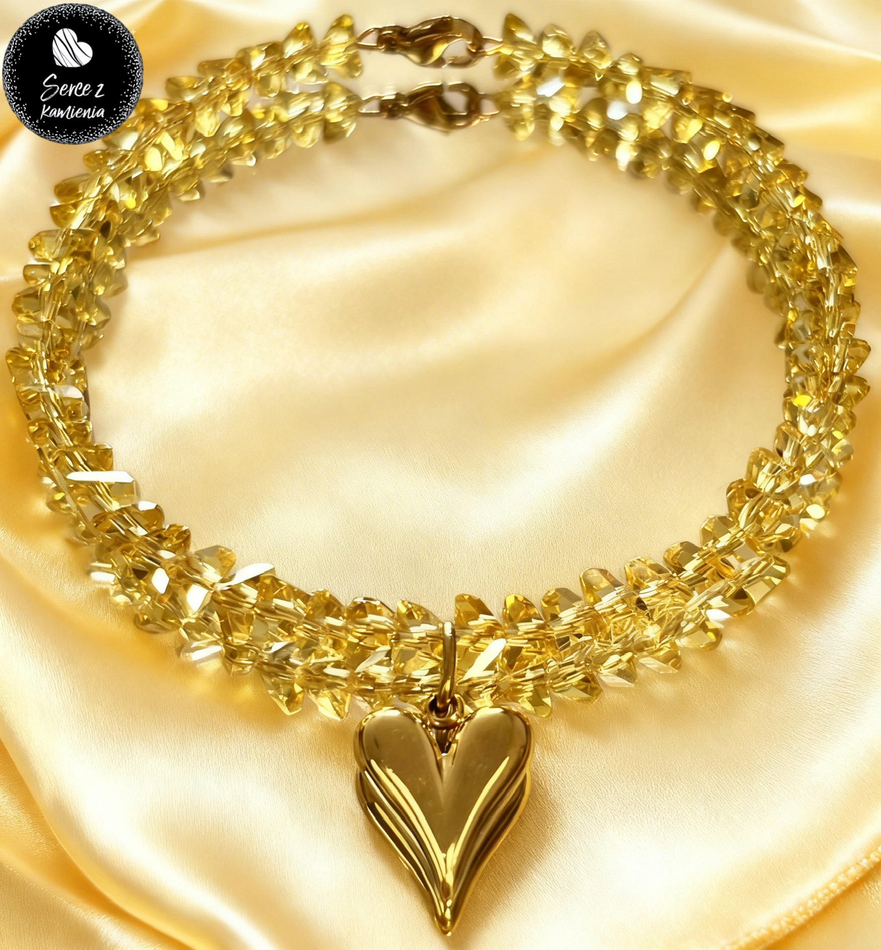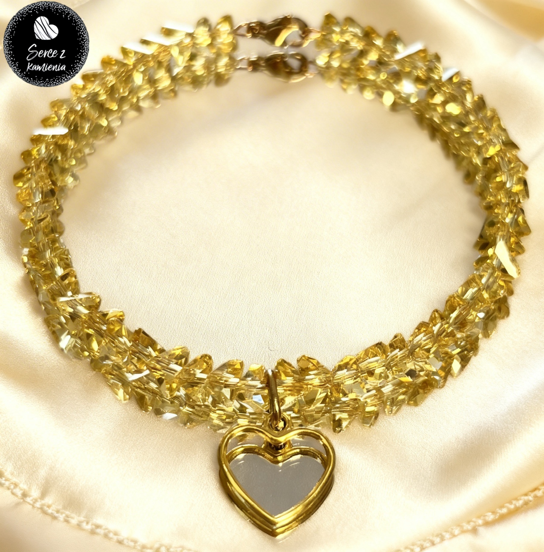 Bransoletka z żółtego szkła jubilerskiego z zawieszką – serduszko