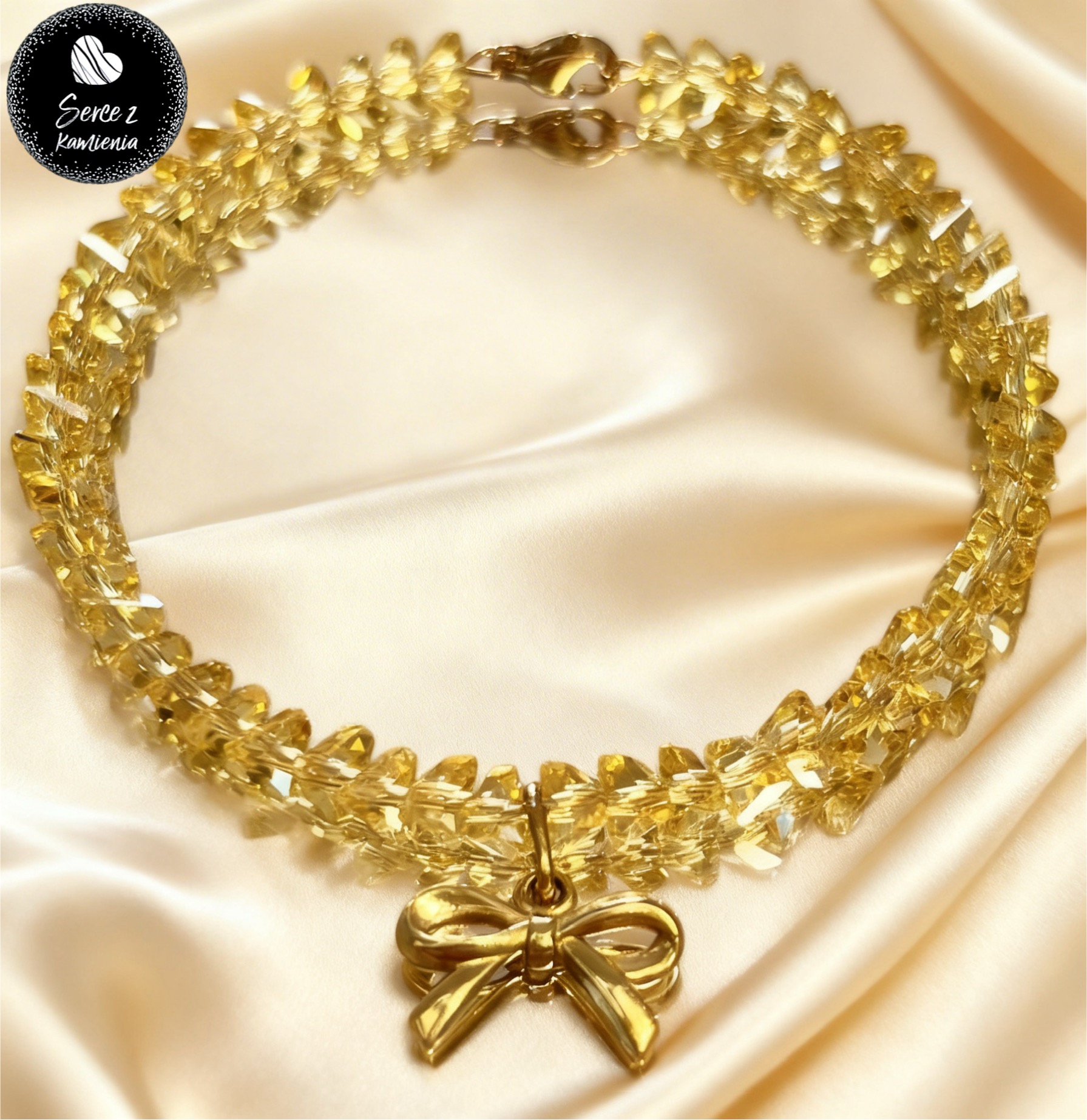 Bransoletka z żółtego szkła jubilerskiego z zawieszką